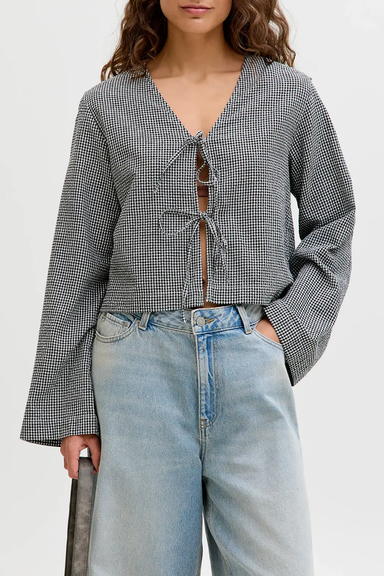 An ultra lightweight tie front blouse. Perfect for staying cool and collected during those steamy months. Layer her up with a tank or tee for a mor...