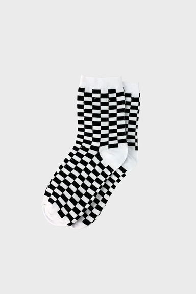 Short socks with checkered pattern. - One size fits most (women’s 6-9) - Wash warm, tumble dry low - Imported