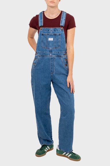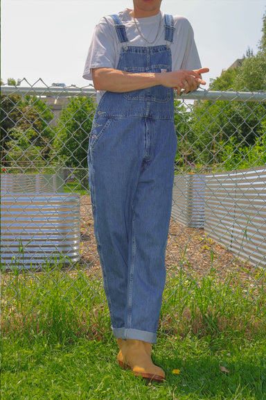 A mid-weight overall with adjustable straps and button sides. - Regular fit- Relaxed through hip & thigh- Straight leg- 29" inseam- 16 1/2" leg...