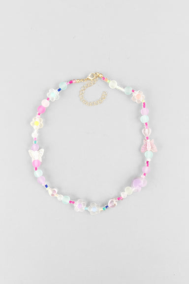 A Y2K beaded pastel dream - iridescent butterflies, frosted flowers, and holographic hearts. Every1 gonna b crushin' on u <3 - 38cm length + 6cm...