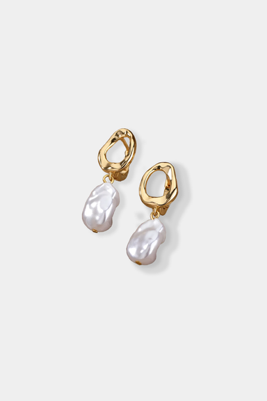 Hollowed out abstract form with an adorable freshwater pearl adornment. - 10mm*35mm- Hypoallergenic- Solid stainless steel base- Gold colour powder...