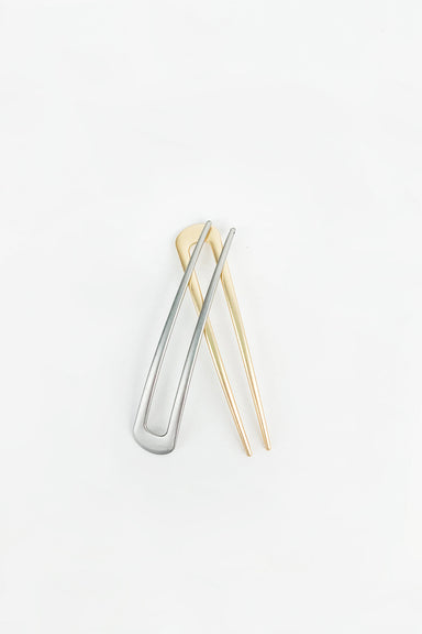 A simple and elegant hair pin in stainless steel or gold toned finish. - Measures approximately 4” - Imported