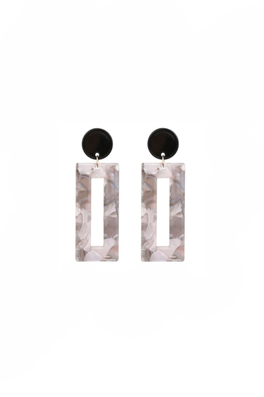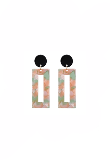 A bold cut linear shape juxtaposed with playful acrylic freeformed patterning. Distinguished yet light hearted. - 2.2 cm x 6.3cm- Nickel & Lead...